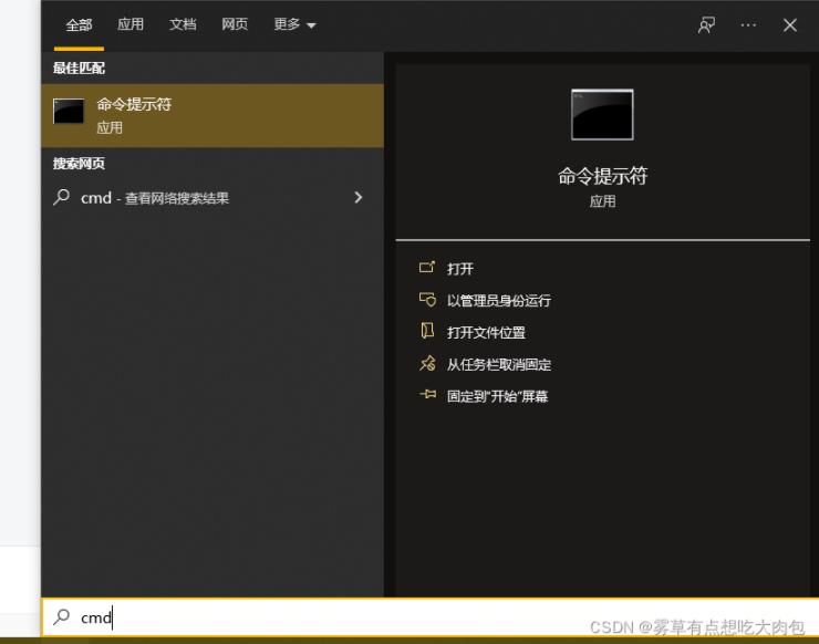 输入 cmd 控制台 找到右 边以管理员身份打开 或者右击命令提示符 以管理员身份打开