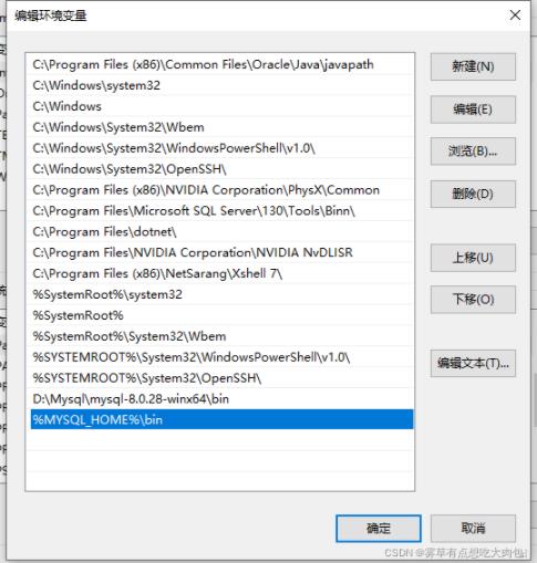新建变量:%MYSQL_HOME%\bin 点击确定