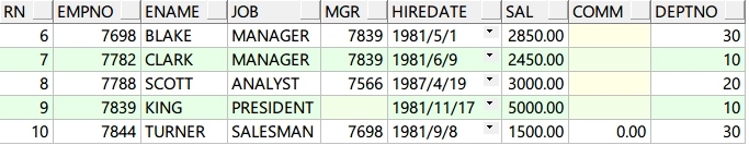 我们选定每页(pageSize)为5。那么EMP表目前共有三页,1~5行为1页;6~10行为1页;1~15行为1页(缺第15行,那么第3页就显示4行记录)