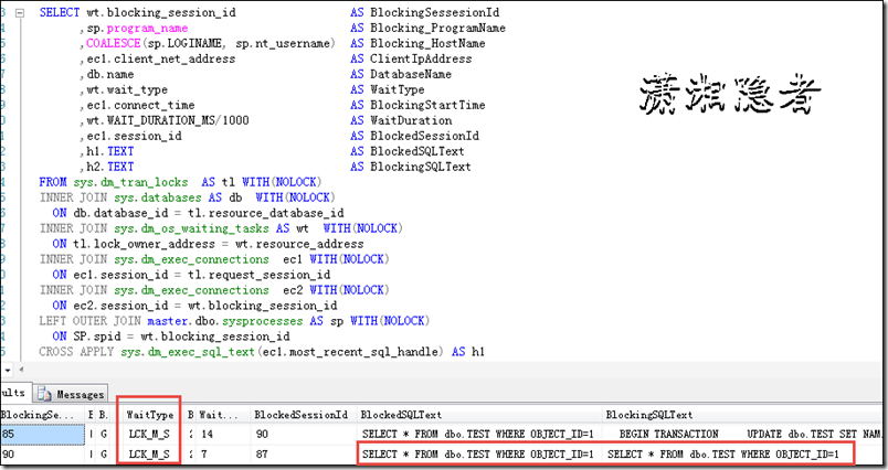 如下所示,我们会发现会话ID为90 、87的会话都在等待类型为RID,Resource为1:24171:1的共享锁