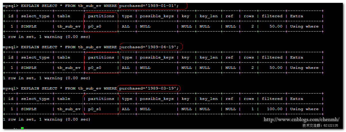 FROM information_schema.PARTITIONS WHERE TABLE_SCHEMA=SCHEMA() AND TABLE_NAME=’tb_sub’;