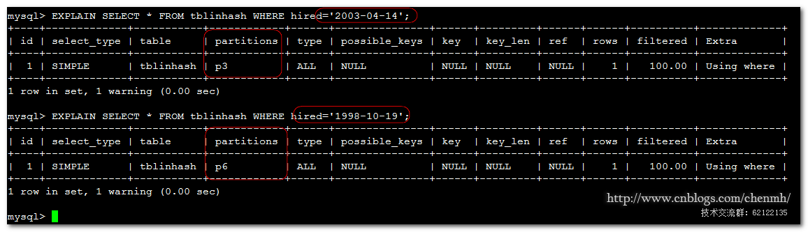 LINEAR HASH和HASH的唯一区别就是PARTITION BY LINEAR HASH