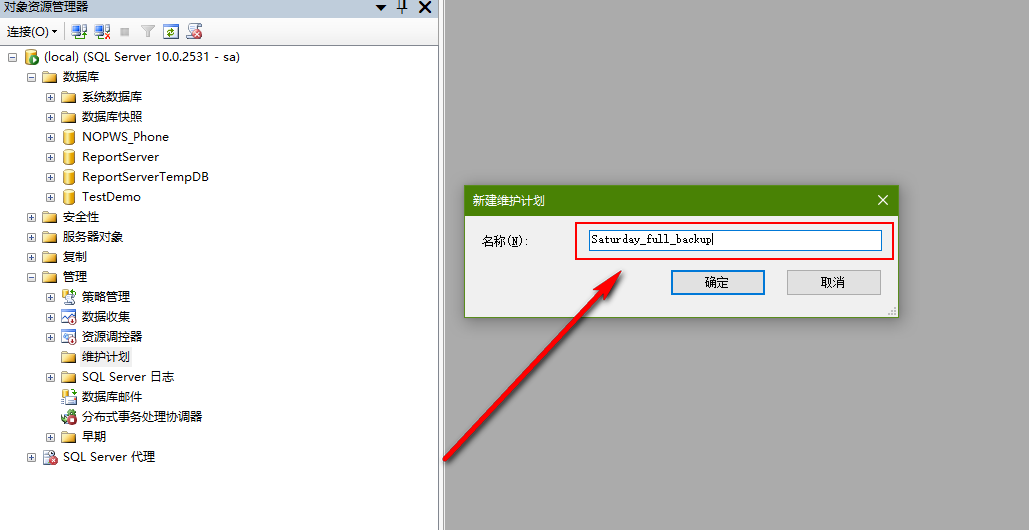 2.给维护计划命名,比如这里我们命名为”Saturday_full_backup”