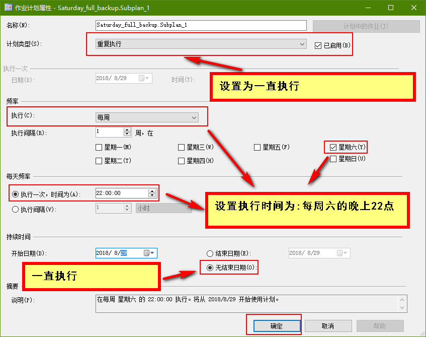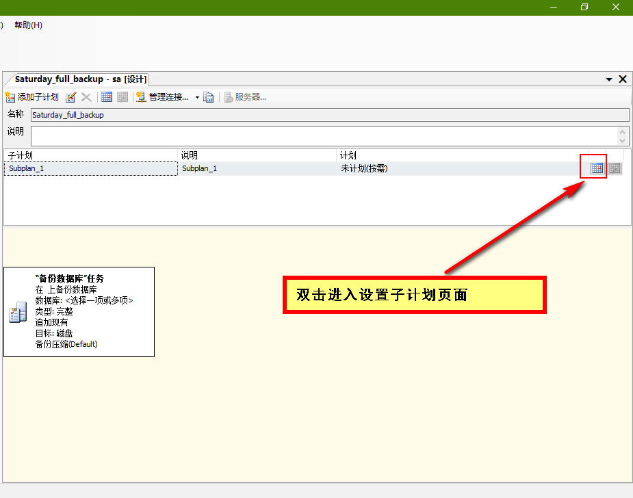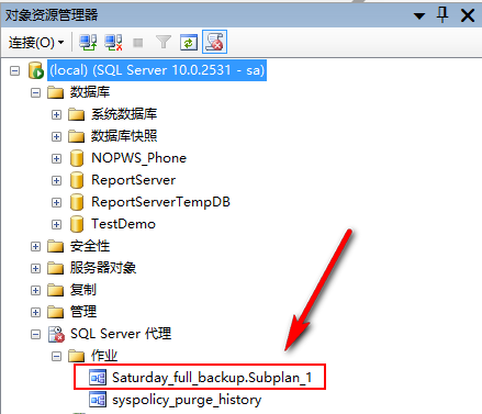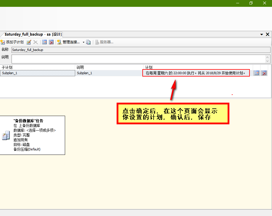 SQL Server 代理 –>作业 –>Saturday_full_backup.Subplan_1(你自己刚创建的备份策略)