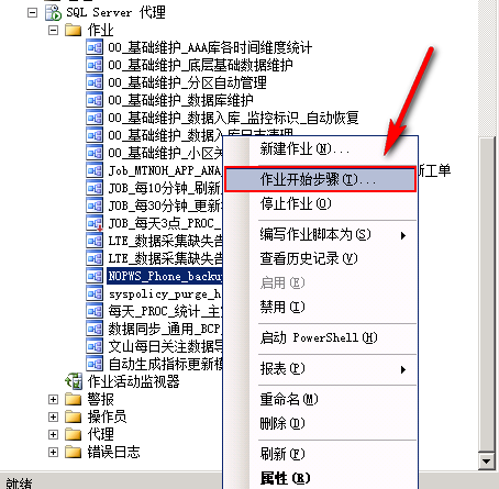 如果作业执行失败,右键该作业,查看”历史记录”,找到错误原因并修正
