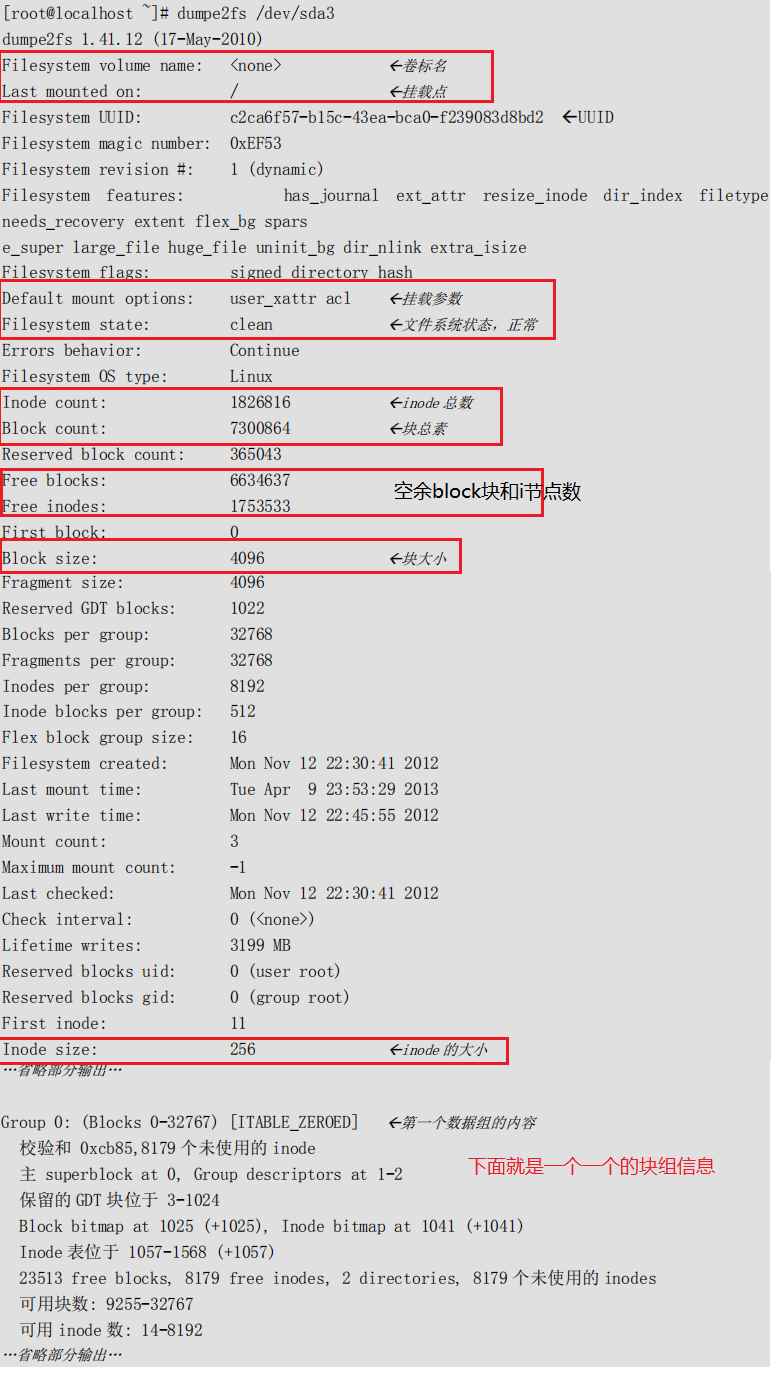 [root@localhost ~]# dumpe2fs -h /dev/sda3