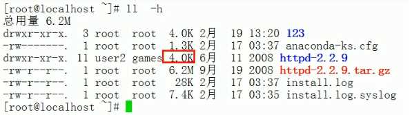 所以执行[root@localhost ~]# du -h httpd-2.2.9命令,就可以看到httpd-2.2.9目录中每个文件的大小,最后会显示httpd-2.2.9目录的大小。