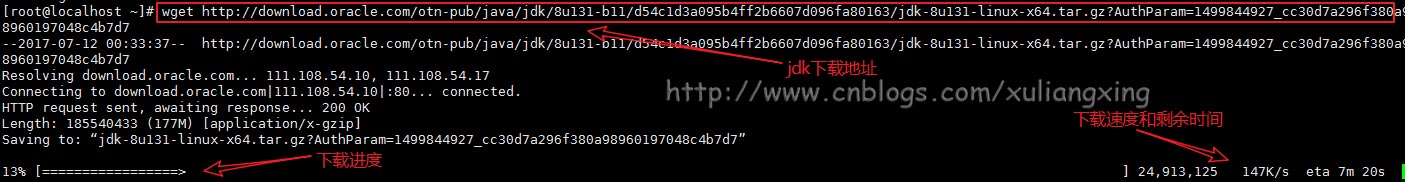 如果Linux本身连接到互联网,我们可以直接通过wget命令直接把JDK安装包下载下来,如图所示: