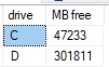 存储过程 sys.xp_fixeddrives用于查看磁盘驱动器剩余(free)的空间