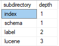 该存储过程返回的字段有子目录名称和相对深度,返回的结果中并没有显示子目录的父子关系: