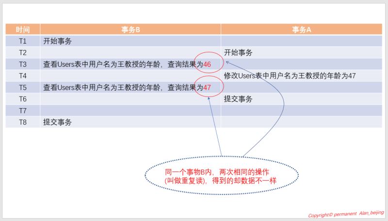 即在一个事务处理内部对相同数据资源读操作之间,没有共享锁会锁定该资源,导致其他事务可以在两个读操作之间更改数据资源,读操作因而可能每次得到不同的