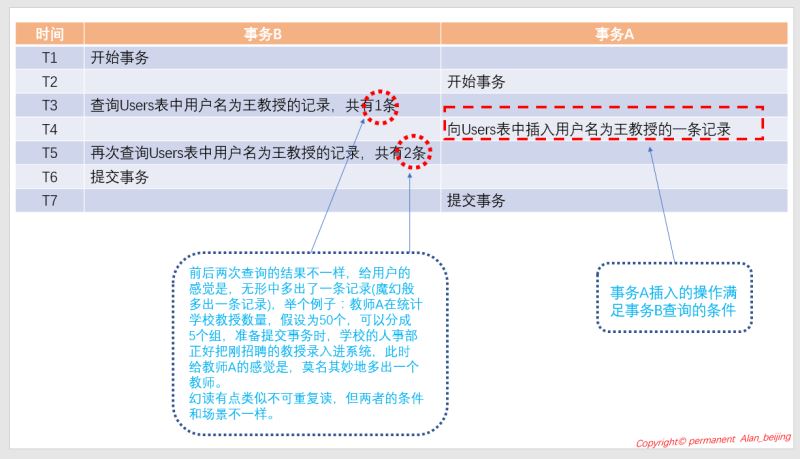 务插入新行,并且新行能满足读操作的查询过滤条件,那么这些新行也会出现在第二次读操作返回的结果中,这些新行称为幻影子,也叫做幻读。