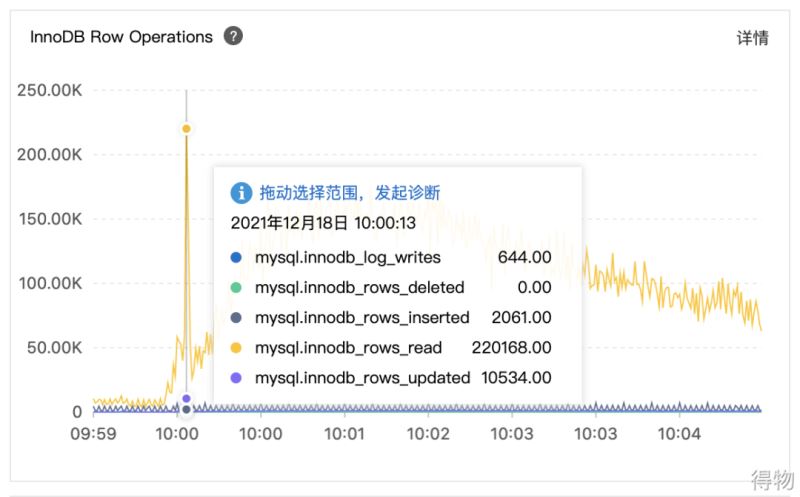 相对来说,IOPS 过高等告警都是短暂性的,一般发生在业务高峰期。这种情况经常是渐变产生的,随着业务增长,数据量也在增长,表结构也越来越复杂,一些早期的 SQL 在索引选择上发生了变化,取得目标数据扫描的行数越来越多。