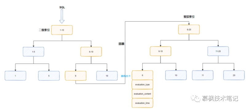 我们所建立的idx_evaluation_type实际上是一个二级索引(叶子节点是主键id),对于数千万一张的大表来说,实际上这个二级索引也是非常大的,而且这个字段本身的值就三个,变化不大。因此Mysql的优化器在分析这个SQL的时候发现,如果按照SQL中的索引来获取数据后再根据where条件进行筛选,筛选后的数据还需要回表到聚簇索引中获取实际的数据。