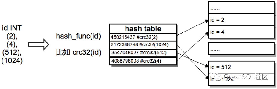 3.把哈希码保存在哈希表中,同时哈希表也保存指向对应每行记录的指针