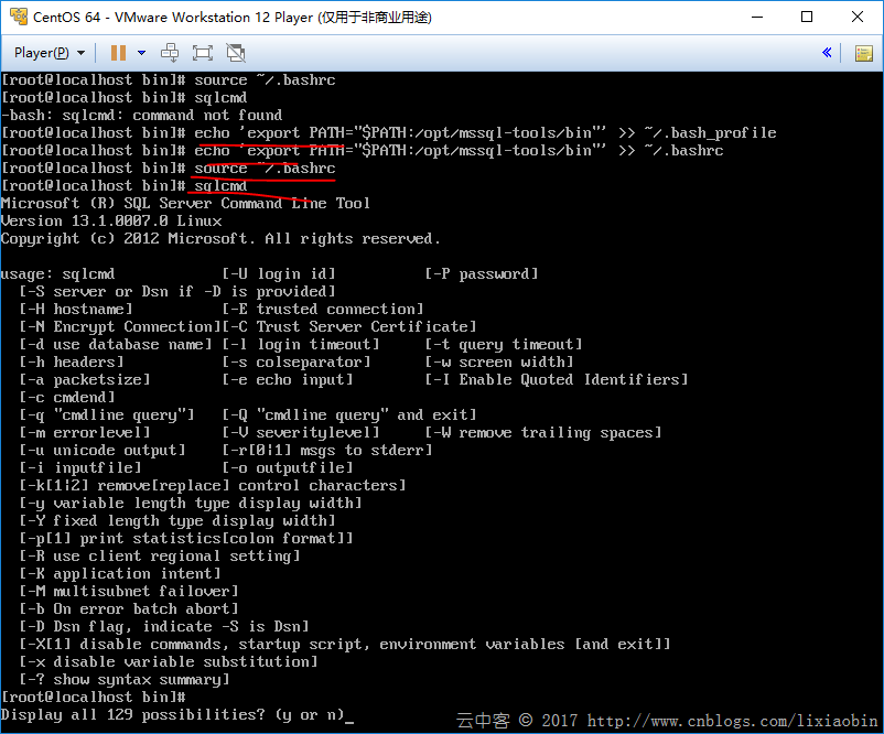 echo 'export PATH="$PATH:/opt/mssql-tools/bin"' >> ~/.bash_profile echo 'export PATH="$PATH:/opt/mssql-tools/bin"' >> ~/.bashrc source ~/.bashrc