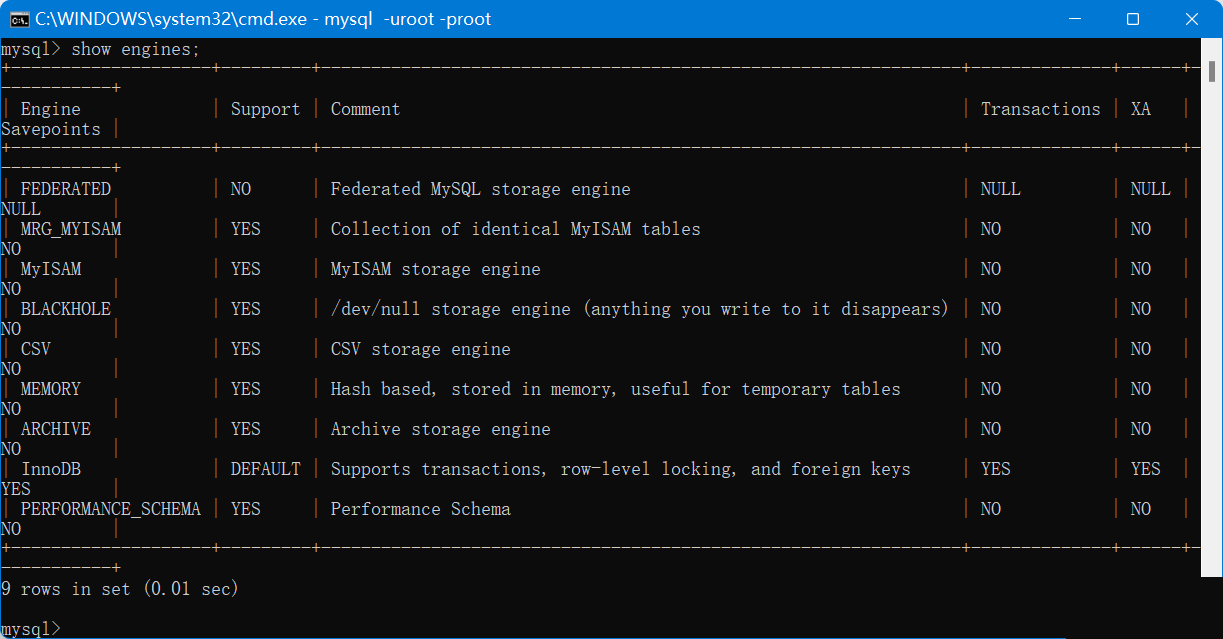MySQL中的数据用各种不同的技术存储在文件(或者内存)中。这些技术中的每一种技术都使用不同的存储机制、索引技巧、锁定水平并且最终提供广泛的不同的功能和能力。通过选择不同的技术,你能够获得额外的速度或者功能,从而改善你的应用的整体功能。