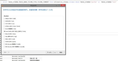 navicat 执行以下SQL的查询(如果需要其他字段,请参考下面COLUMNS表字段拓展):