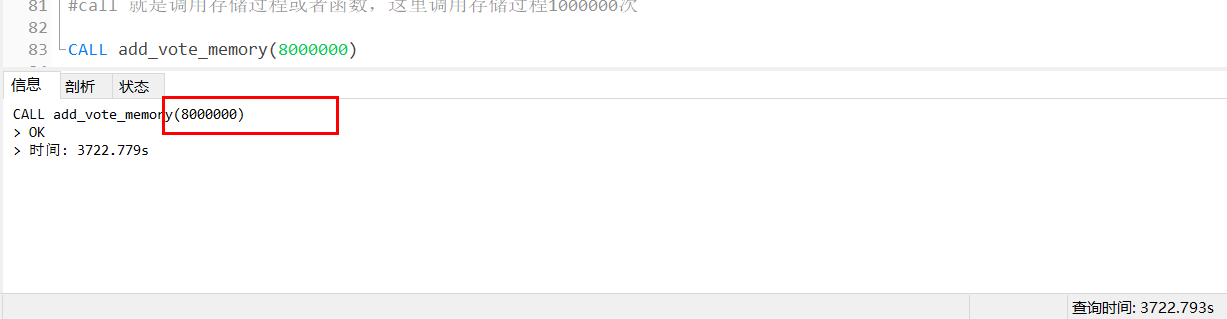 call 就是调用存储过程或者函数,这里调用存储过程1000000次