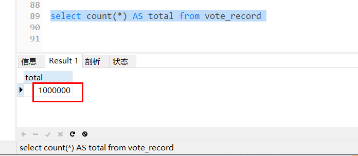 查看记录,是否有插入100W条数据。