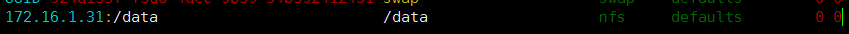 mount -t nfs -o noatime,nodiratime,nosuid,noexec,nodev,rsize=131072,wsize=131072 172.16.1.31:/data /mnt