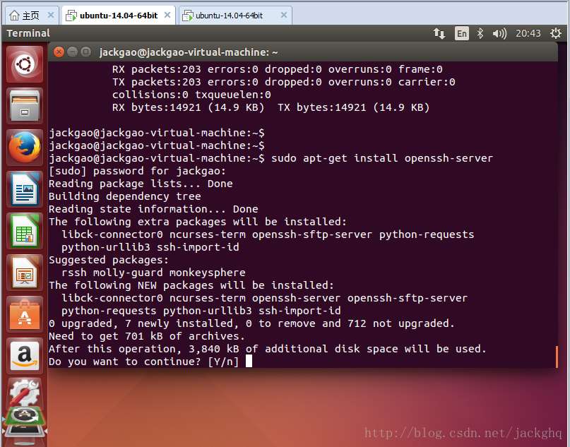 3. ubuntu14.04 ssh的安装及使用方法