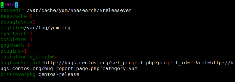 cachedir=/var/cache/yum #yum下载的RPM包的缓存目录 keepcache=0 #缓存是否保存,1保存,0不保存。 debuglevel=2 #调试级别(0-10),默认为2 logfile=/var/log/yum.log #yum的日志文件所在的位置