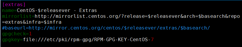 [extras]这个表示的是名称,—>yum的ID,必须唯一,本地有多个yum源的时候,这里必须是唯一的