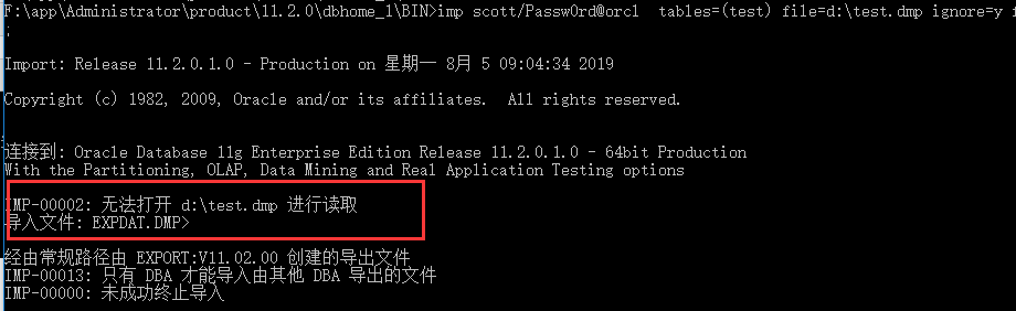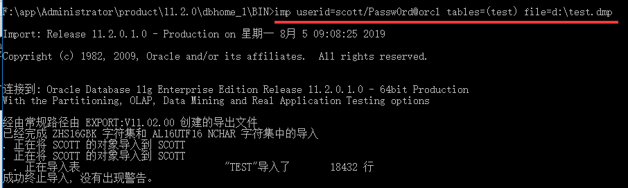imp userid=scott/test@orcl full=y file=d:\test.dmp