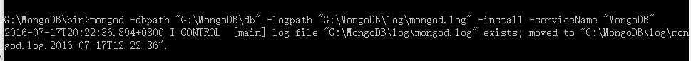 2016-07-17T20:22:36.894+0800 I CONTROL [main] log file "G:\MongoDB\log\mongod.log" exists; moved to "G:\MongoDB\log\mongod.log.2016-07-17T12-22-36".