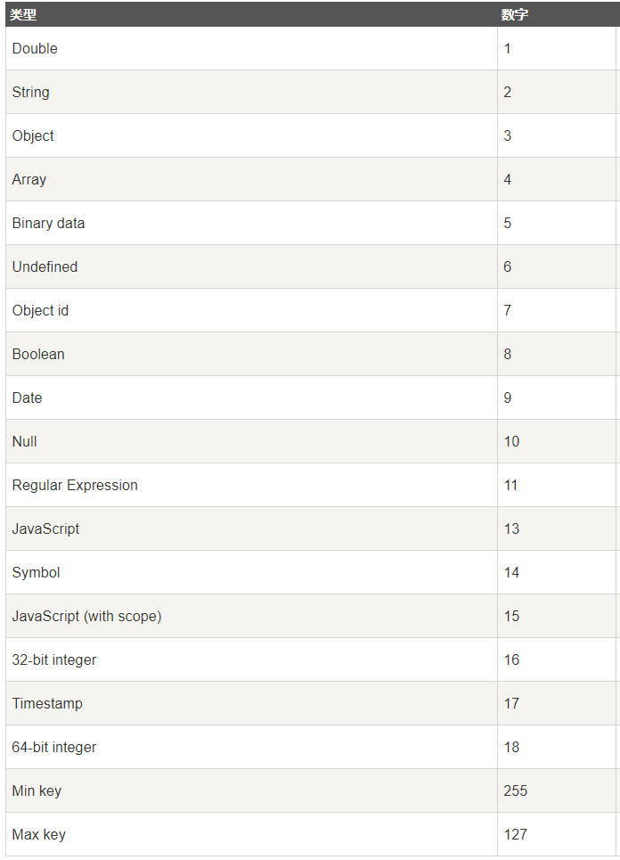 条件操作符 $type是基于BSON类型来检索集合中匹配的数据类型,并返回结果。