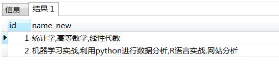 select id,string_agg(name,’,’) AS NAME_NEW from test