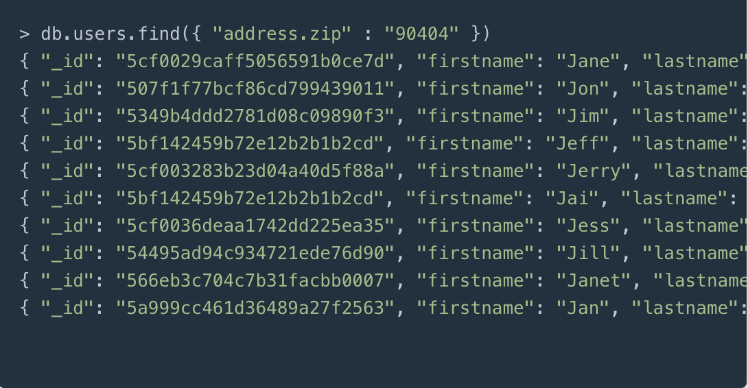 相反,MongoDB 使用的是非结构化查询语言。从基于 JSON 的文件型数据库中查询数据,第一要务是使用与结果匹配的属性来搜索文档。