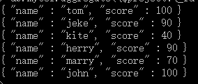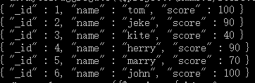 { “_id” : 6, “name” : “john”, “sex” : “男”, “score” : 100, “age” : 31 }