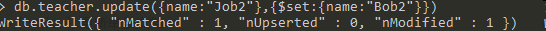 query是BSON格式的,作为查找文档的条件,query的条件参考上面查找文档中的query filterupdate是BSON格式的,指明了如何修改文档,修改哪些字段- 注意,修改字段值需要加上{$set:{“key”:”newvalue”}},不然{key:”newvalue”}会替换原来的文档,导致其他字段数据丢失