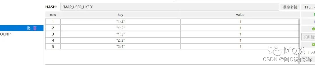 (2)某用户被点赞的数量统计: MAP_USER_LIKED_COUNT 为键值, 被点赞用户id 为 filed, count 为 value