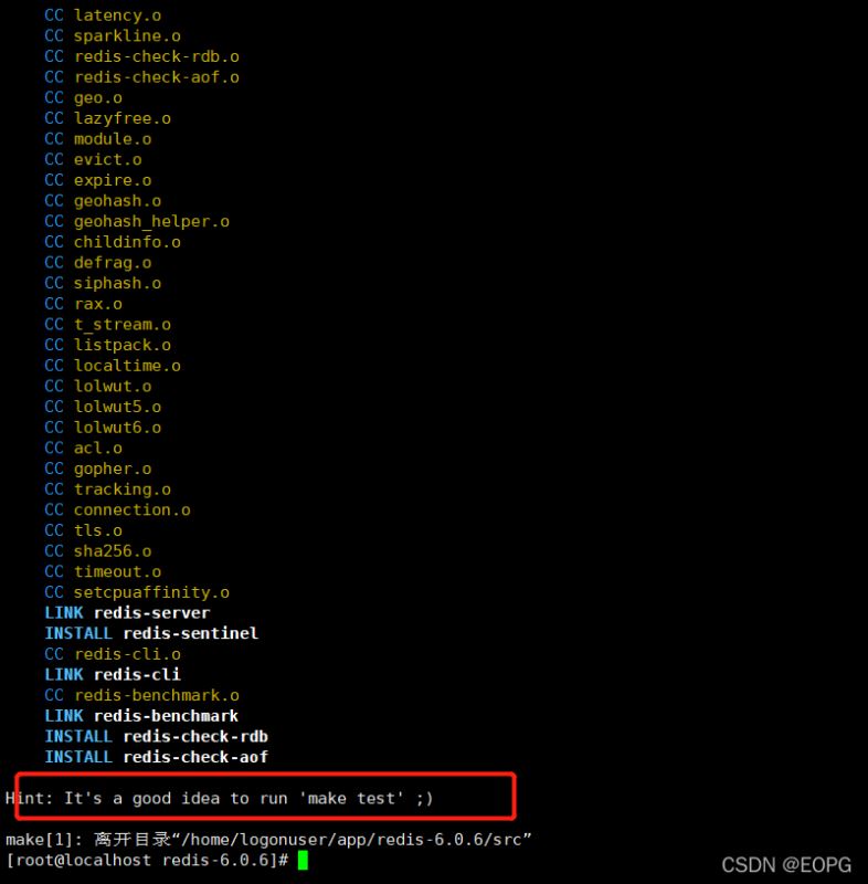 make 编译完成以后提示 Hint: It’s a good idea to run ‘make test’ ? 则安装成功