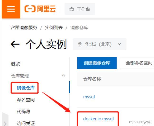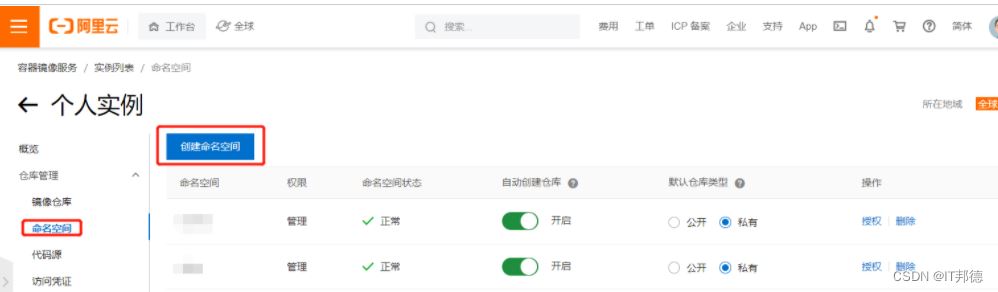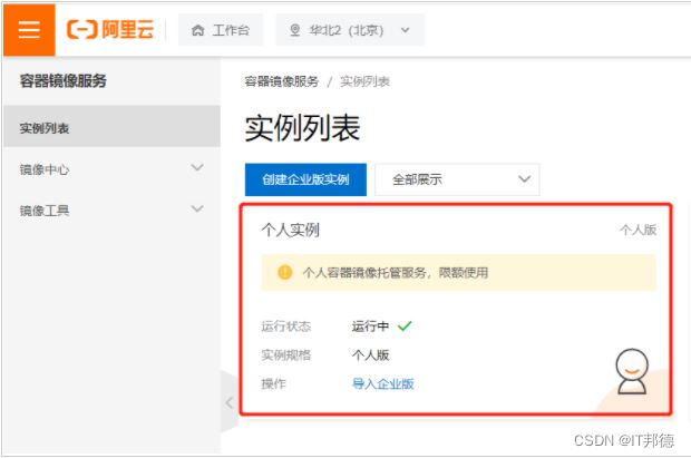 访问阿里云容器镜像服务地址 https://cr.console.aliyun.com/cn-beijing/instances