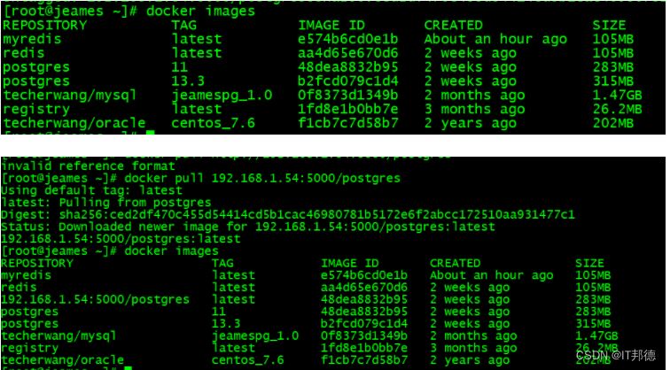[root@jeames ~]# docker pull 192.168.1.54:5000/postgres