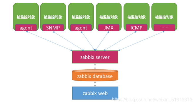 zabbix是由2部分构成,分别是zabbix server(监控端)与zabbix agent(被监控端)。