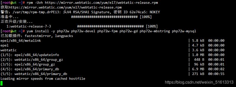 rpm -Uvh https://mirror.webtatic.com/yum/el7/webtatic-release.rpm #yum源的建立