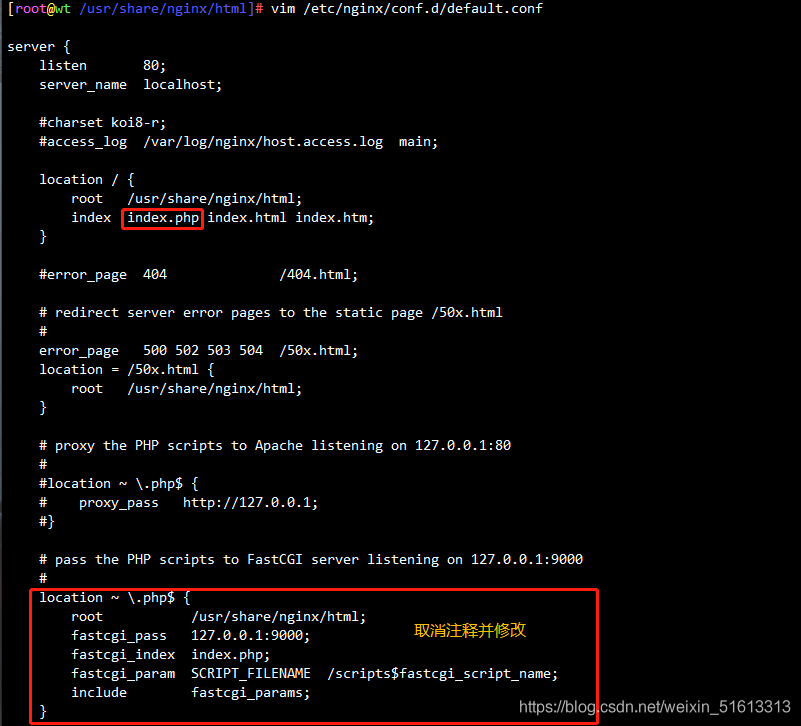 2.5 修改nginx配置文件支持PHP并修改php配置文件