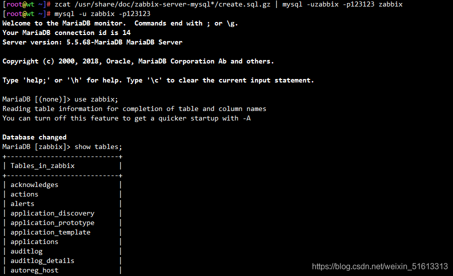 DBPassword=admin123 #124行,取消注释,zabbix数据库的密码