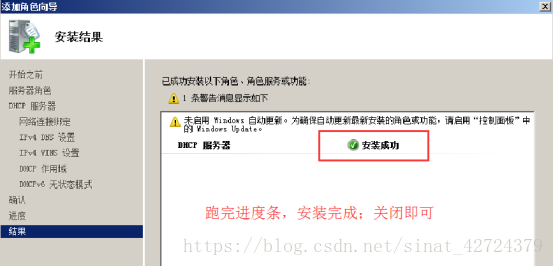 13. 在“确认”界面,确认后点击安装,开始自动安装。进度条完成,DHCP也安装完成。