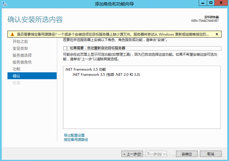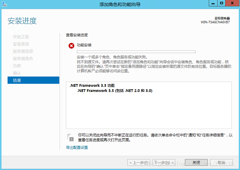 如果找一个.NET Framework 3.5的来安装,系统会报安装了一个或者多个角色服务或功能失败,找不到原文件等错误。