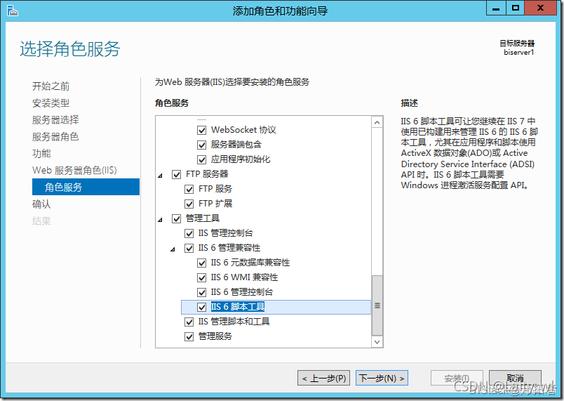 在选择IIS角色服务的选择框中,必须将所有的IIS组件全部勾上,一定要检查每个可展开的下级选项框是否也全部勾选上。