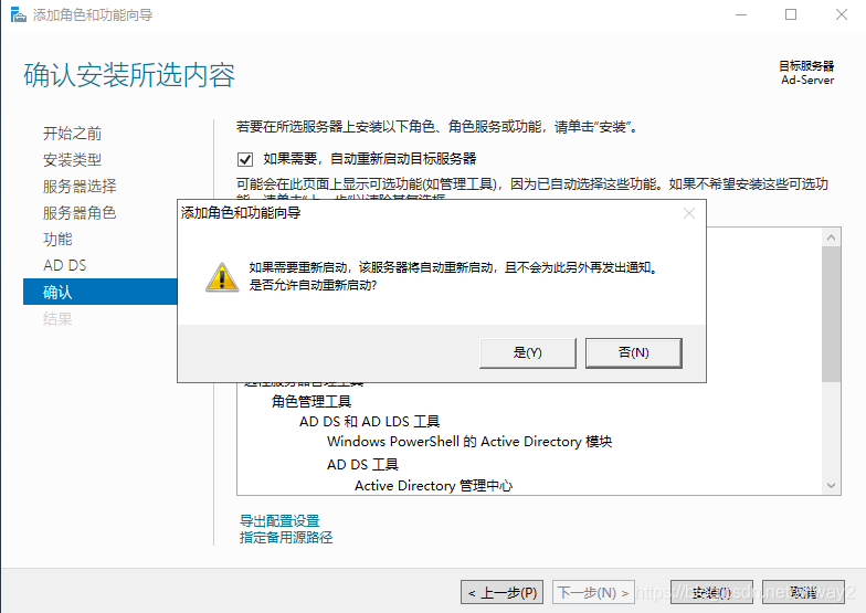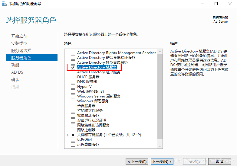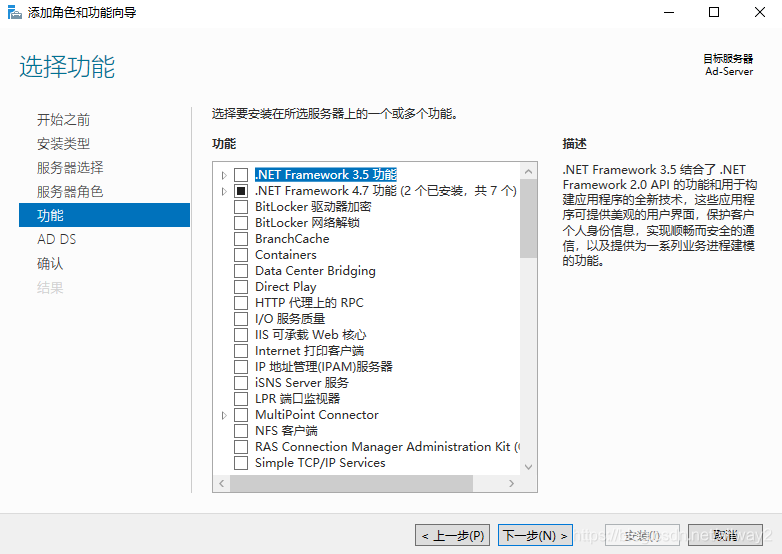 (4)选择添加AD域服务(Active Directory 域服务),同时添加所需功能。