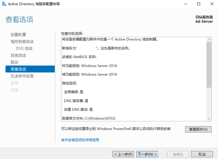 (7)查看选项,默认,下一步 。