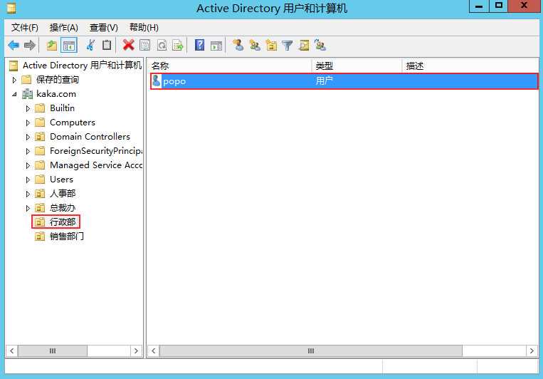 1.首先在AD域下要有行政部门的OU且已建立有popo的用户。