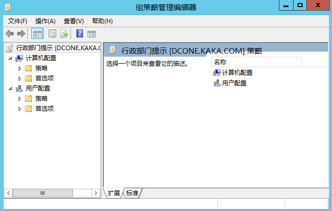 4.在打开的组策略管理界面里面,林kaka下的DefaultDomain Policy为全局策略,而只对计算机做了配置。